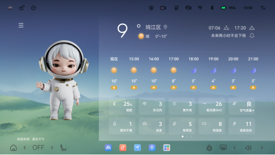 针对新春佳节等场景,星途ET5新增节日彩蛋功能,通过车模车衣、动画、壁纸、焰火音效等元素,营造座舱节日氛围感,让每次出行都充满仪式感,传递细致入微的人文关怀。同时,天气应用界面新增VPA虚拟形象动画,角色将根据不同天气呈现对应的趣味动作,生动形象地传递天气状态,让座舱交互更具趣味与温度。此外,星途ET5新增多款车外低速模拟音,在提升道路安全的同时,为用户带来更丰富的个性化听觉体验,兼顾实用性与情绪价值。